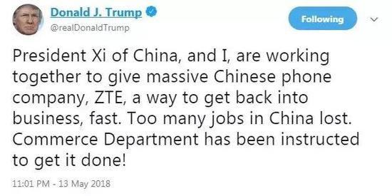 当然,有些人想当然地认为特朗普发推暗示将对中兴解禁,肯定是中方付出了高额对价。但是问题是,如果美方真的在此事上掌握了完全的主动权,按照特朗普的一贯风格,他应该把中兴的事情放到中国代表团赴美开展的第二轮谈判之中进行,以求实现最高程度的要价,何必在中方代表团赴美之前就宣布这条消息,从而造成“为中方代表团赴美谈判改善氛围”的客观效果呢?