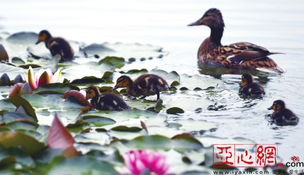 亚心网讯(文/图记者马元)“好几天了,我每天来都能看到大野鸭带着12只小鸭子在水里游,有时候它们就在湖边的芦苇丛里找吃的。”5月15日,在乌市南湖市民广场,市民黎春生告诉记者。