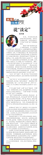 | 黄天骥主笔的“生猛广州 淡定广州”专栏。 |