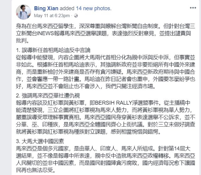 “独媒”挑拨马来华人与大陆关系 反被骂的道歉