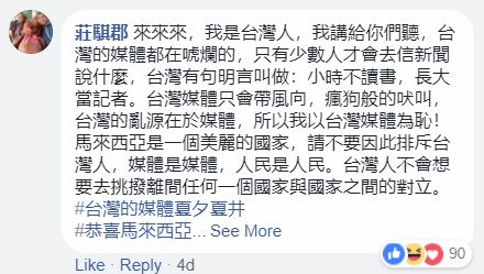 同时,一些对台独媒体同样很反感的台湾网友也对马来西亚网民对三立的谴责表达了支持: