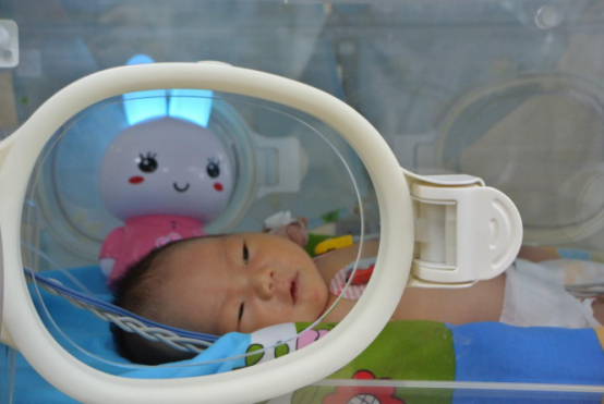 那么,在孩子享受不到母爱的这段时间,新生儿中心的医生护士们,会对孩子有什么样的“特殊关照”呢?“我们的办法多着呢!”郭锐主任一边说一边拿出一个可发光,可播放音乐的小兔子玩具,放在了原本正在哭闹的小宝宝的床头,小宝宝一听见音乐,很快就安静了下来,表现出一副很开心的样子。