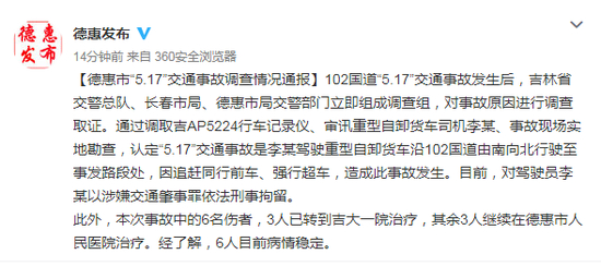 原标题:德惠市“5.17”交通事故调查情况通报