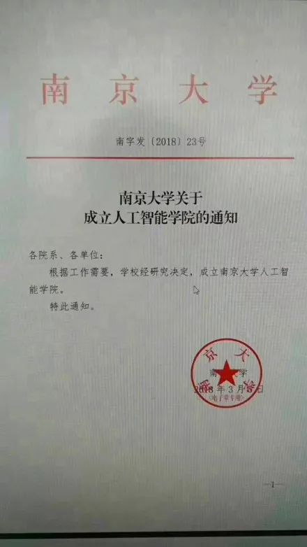 2018年3月6日,南京大学官网正式发布新闻,经研究决定,南京大学正式成立人工智能学院。