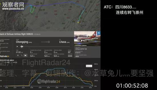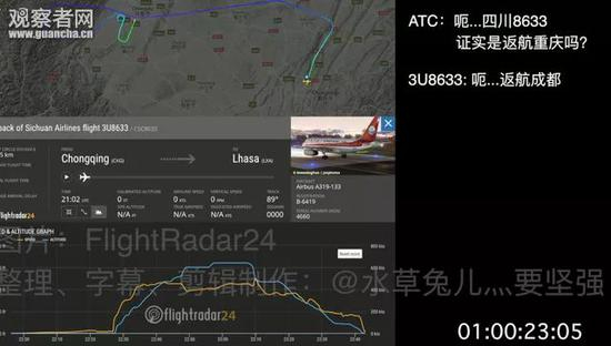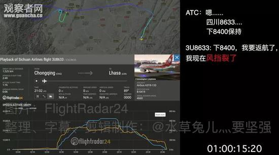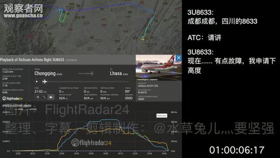 其中显示,在飞机出现故障后,机长十分沉着冷静地与ATC进行联系,“现在…有点故障”,申请下降高度和返航。