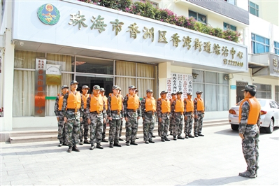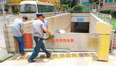 记者来到珠海市香湾街道采访时,正好遇上这里正在举行防汛演练,只见两名保安快速从地下车库抬出两块防汛专用挡水板,熟练地安装在地下车库出口上,再堆放上防汛专用沙袋。几分钟工夫,就给这个地下车库筑上牢固的挡水墙。