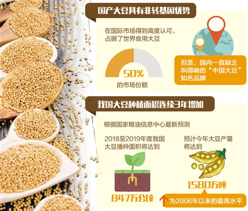 国产大豆具有非转基因优势,在国际市场得到高度认可,占据了世界食用大豆50%的市场份额。但是,国内一直缺乏叫得响的“中国大豆”知名品牌。黑龙江大豆虽具有地域优势,但不是真正意义上的区域品牌。