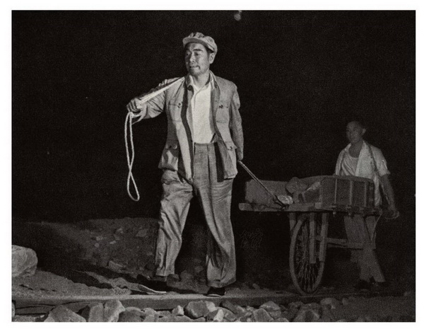 1958年5月25日,周恩来在十三陵水库工地拉车。