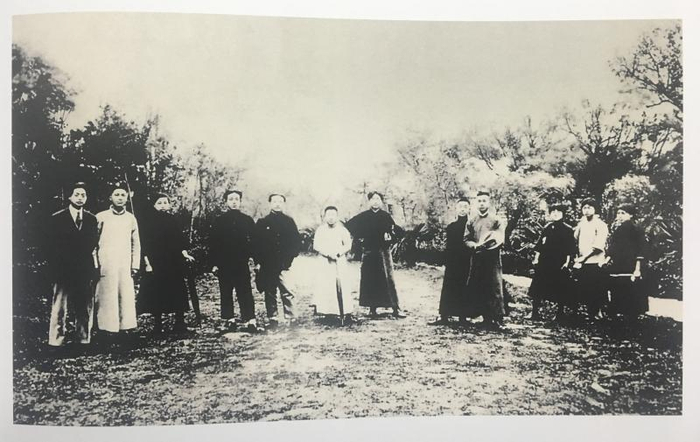 1920年5月8日,毛泽东(左七)和新民学会旅沪会员集会于上海半淞园,欢送即将赴法勤工俭学的6位会员。