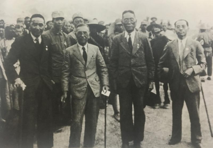 1940年3月至5月。爱国华侨领袖、工商业巨子陈嘉庚率领“南洋各属华侨筹概会回国慰劳团”参访重庆、成部、延安等地。陈嘉庚一行在延安参观期间,所见所闻令他印象深刻。后来在回忆延安之行时,陈嘉庚不无感慨地说:“在延安毛主席请我们几位吃便饭,为了照顾客人多了一两个菜,虽然吃得不是很好,可是我很高兴,这才是为人民着想。通过那次回国参观的经历,我早就认定中国的希望在延安,共产党、毛泽东是中国人民的救星。”图为陈嘉庚(前排左二)等访问延安。