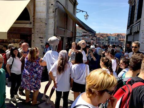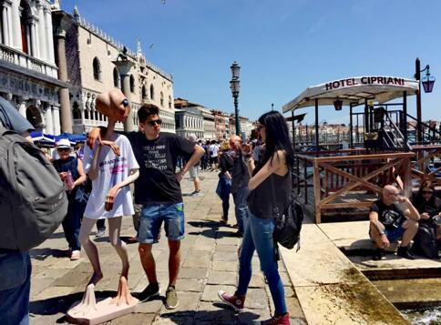 “外星人”展在圣马力诺馆亮相10天后,又移至圣马可广场等地展出,受到当地市民和来此旅游的各国游客的喜爱和追捧,许多人拍照留念、还上传至各大社交网站,加上一些艺术家的点评,很快并持续占领了当地媒体的头版头条或封面,成为一场游走的“行为艺术”,彻底火了,让很多艺术家艳羡不已。
