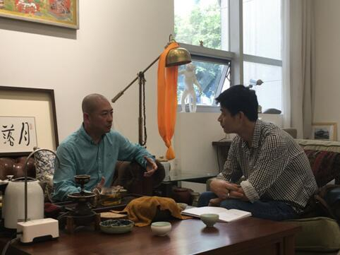 艺术家傅榆翔与记者交谈。实习生 王云萱 摄