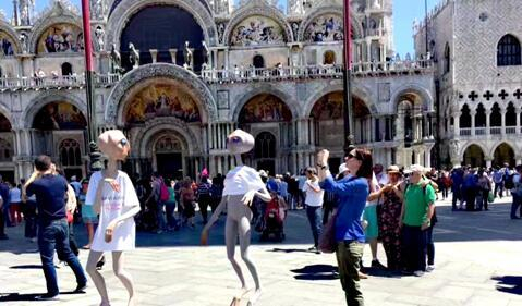 “外星人”展亮相圣马可广场等地,受到当地市民游客追捧。