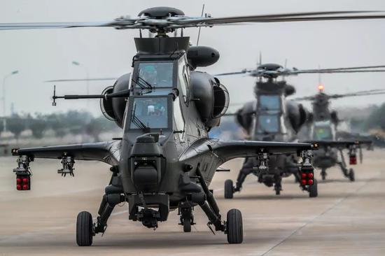直10是我国自主研制的第一种专用武装直升机,具有优良的飞行性能、较高的战场生存力、多机空地信息化协同、连续、快速攻击多目标能力,可在全天候、复杂战场环境和野外保障条件下遂行多种作战任务。
