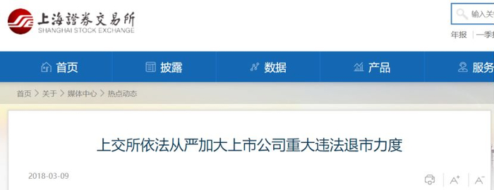 今年3月9日,沪深交易所官网均发布了《上海证券交易所上市公司重大违法强制退市实施办法(征求意见稿)》,根据证监会有关意见,对重大违法强制退市制度进行了细化和明确,其中对首发上市和重组上市中的欺诈行为表现出“零容忍”的态度。上交所称,目前征求意见已经结束,后续在吸收合理建议的基础上将适时对外发布。