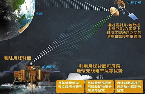 月球背面登陆探测面临着一个很大的难题——那就是由于月球自身的遮挡阻隔,运行到月球背面的着陆器和巡视器无法与地球之间进行通信,可谓“两眼一抹黑”。因此,如何解决着陆器和巡视器在月球背面时与地球之间的通信,成为月球背面登陆探测的关键难题。