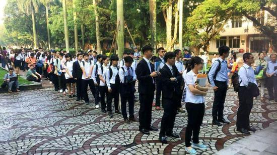 5月14日,一位陪孩子去大陆高校面试台湾母亲,拍下了在广州中山大学面试的台湾高中生