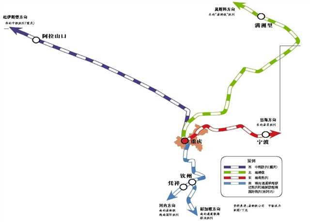 自2011年渝新欧国际物流大通道打通以来,重庆以铁路为载体,陆续打造了西、南、北、东四条国际物流大通道。