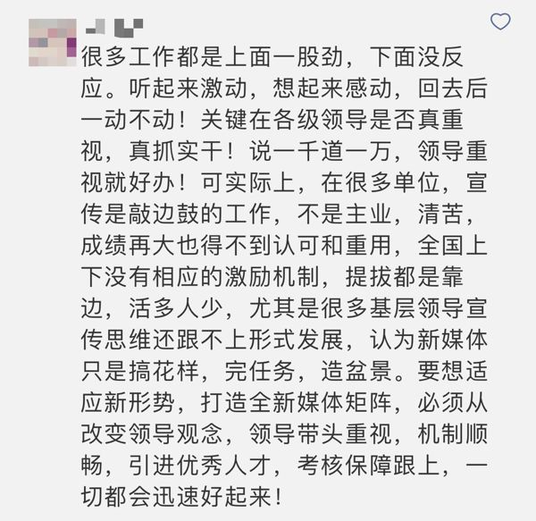 做新媒体的人兼职其他事太多,新知识储备不足,培训不够。没有足够的真正有才干的人手,很多都是一边忙其他事务,一边兼职,专职人才匮乏。