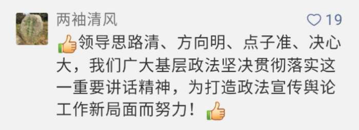 看了陈一新秘书长的讲话后,网友们都深感振奋,认为这无疑是政法宣传舆论工作的强心剂。