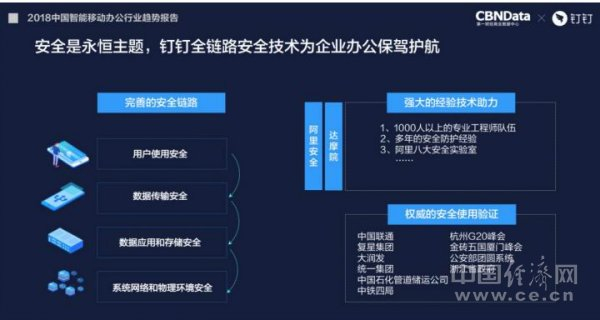 “用户数据安全和隐私保护是钉钉的生命线,”钉钉安全负责人罗锋(花名迦卢)介绍,钉钉对于用户数据安全和隐私保护的自信,源于阿里安全部1000多名资深安全工程师为其做保障。钉钉的全链路安全技术,就是从用户的手机或是PC端接触到钉钉,到数据传输过程,再到数据应用和存储,最后包括系统网络和物理环境,整个过程都得到高标准安全防护。