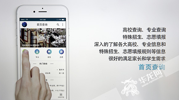 这款APP具有高校查询、专业查询等功能。记者 李文科 摄用这款文艺气质的APP比起来,另一款名为《志愿谋》的APP注重的则是实用性。顾名思义,这款APP是针对高中毕业生填高考志愿而设计的,分为四个模块。个人中心模块做一些个性化的编辑设置;首页查询模块用于高校查询、专业查询等,便于考生更直接便捷地了解各类信息;社区交流模块则有学长学姐、同学、家长交流、最新政策解析等特色模块;分析评估模块则会对考生的性格和兴趣等进行测评,对考生进行填报志愿的智能推荐、志愿风险评估等。