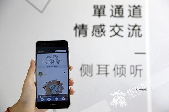 这款APP具有单通道情感交流的功能。记者 李文科 摄“现在很多APP都是以交友为目的,但这个不是,这只是单纯地分享你的故事,同时你又倾听了别人的故事。这就可以了,不需要互相认识。”设计者钟海静这样说道。