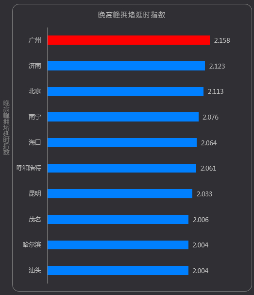 ——拥堵延时指数高达2.158。
