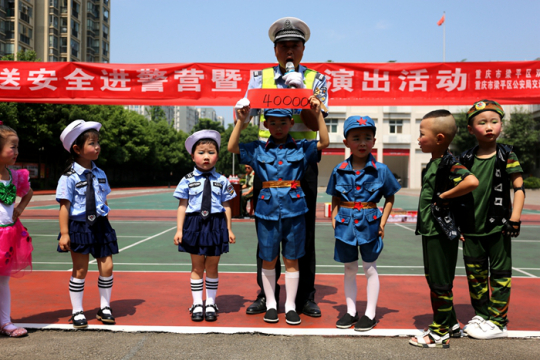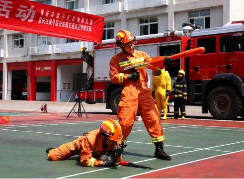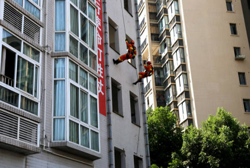 梁平消防官兵飞檐走壁 小朋友在旁边加油喝彩!