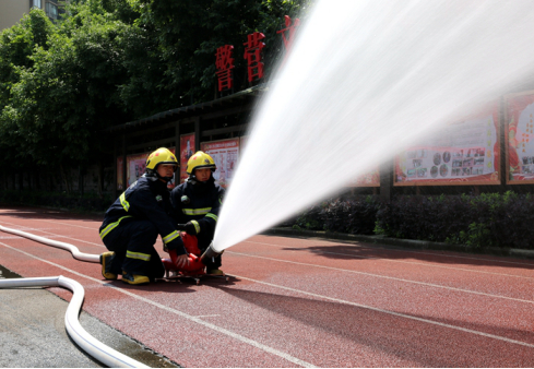 消防官兵演示高空滑绳自救、枪炮协同操、机动链锯拆卸组装及使用,展示了队员娴熟精湛的业务技能、顽强奋进的拼搏精神,赢得了师生们的阵阵喝彩。