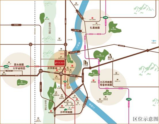 井双新城是沙区东部城市建设的主阵地之一,也是沙区经济发展的新增长点,人文资源丰富,生态优势明显。随着双碑大桥和双碑隧道建成投用,沙滨路磁井段、大竹林大桥、井口隧道的规划建设,未来的井双新城将与江北、三峡广场、大学城及西永等区域连为一体,成为沙坪坝区的又一块宝地。