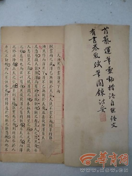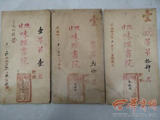 李亚茹拿着一份光绪年间的考卷告诉记者,考卷长宽分别为28厘米、15厘米。考卷封面中间写有“陕甘味经书院”,这是考生就读的学校;左侧写有“膏火陆钱发”,只有优秀考生才会有膏火费用(膏火即指买灯油的钱);最左侧写有考试时间是“光绪十五年六月初一”;封面右侧写着“壹等第壹名”,表明考生所得名次;考卷下边有“廪生金毓敏”,廪生就相当于现在优秀生,因为是廪生,所以考生金毓敏的考卷封面上有“膏火陆钱发”的字样。“封面能看到考生的籍贯及名次等信息,相当于现在高考要署考生基本信息一样。”