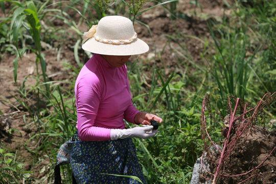 在火流星“光临”后的三四天里,村民回忆,起码有上千人在坝子或小坡上捡“小星星”。绿意拂过的甘蔗地里,各色的阳伞和草帽点点散落其间,缓缓无序地游移。