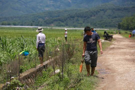 不时也有穿着筒靴的村民从地里跨上马路,相互简单询问着彼此的“收获”。有的并不愿多语,边走边甩着手中的竹棍,四下打量了一会后,将棍子扔进了一边的稻田中。