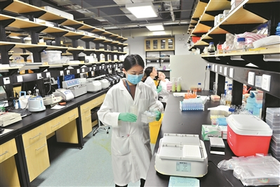 | 合成所的实验室右侧是传统的生物研究人员工作场景。 |