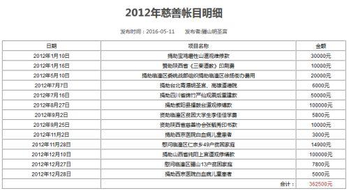他表示,庙里的各项账目输入到网上可能会出错,这应该也是出错了。“因为我们有时候打字的时候,会把网站上的一些东西打错,这个倒是会有。”他还称,13年的账目已经过去很久了,他需要再彻查一下才能给予回复。