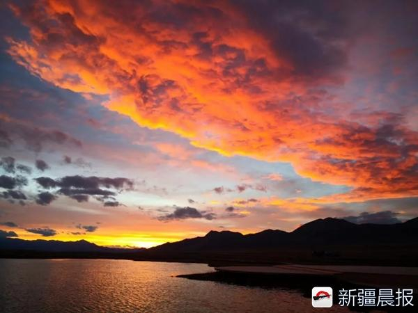 赛里木湖景区的游客们也被眼前的晚霞吸引,纷纷拿起手机、相机拍照留念,兴奋不已。“云层被霞光映照得绯红绯红,绚丽多变,真是美不胜收。”游客王先生说。