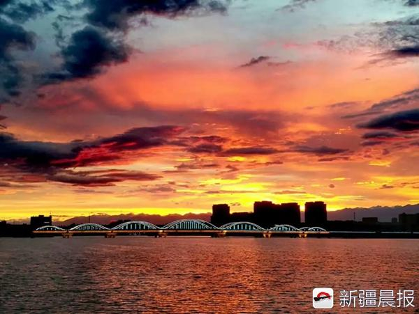 博尔塔拉大桥上空的晚霞