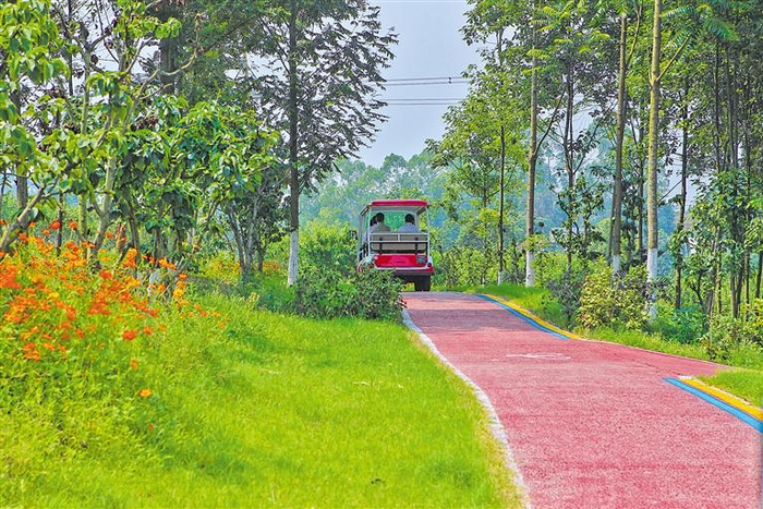 走进新都区军屯镇通村环游绿道,紫薇主题公园、桂荷月畔生态湿地公园、森林花语大型休闲农庄、蓉华园林森林康养……一个又一个生态公园和现代农业项目鳞次栉比,近20公里的乡村绿道,俨然就是一个大型乡村景区道路。军屯镇一位负责人告诉记者,再过半个月,这里将是花的海洋,紫薇由7月逐渐进入盛花期,绿道两旁的行道树、生态公园全被紫薇花海包围,处处都是在花丛中留下美丽记忆的游人。紫薇小镇也在那时优美登场。
