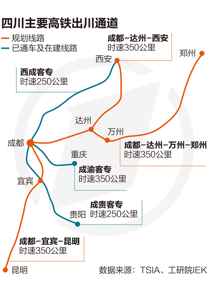 因此,成达万高铁被寄予厚望。西南交通大学交通运输和物流学院彭其渊教授向第一财经记者表示,设计时速350公里的成达万高铁,可以说是出川通道中质量最好、速度最快的一条通道。
