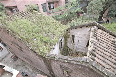 记者站在高处还看到,故居屋顶荒草丛生,有一间房子的屋脊部分已经缺失,檐口的灰瓦也已经缺失。周边出租屋林立,往来的多是为工作和生活而奔波忙碌的打工者。