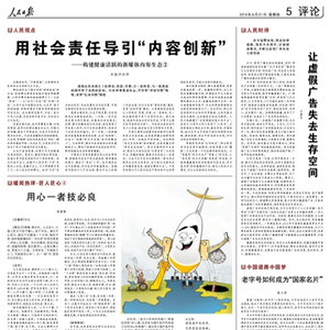 细化制度与规则、强化监督管理,是责任落地的第一步。快播案的审判,让人们更加清醒地意识到,所谓技术中立不能成为违法犯罪的挡箭牌;而在对违规违法微博和微信公众号、直播短视频平台的一系列清理整顿实践中,平台的审核管理责任也被更好地制度化了。与此同时,树立内容创新的行业标杆同样重要,主流价值应该成为旗帜,主流媒体应该成为榜样。人民日报搭建了“全国党媒信息公共平台”,在创刊70周年之际又发布了“人民号”,正是希望把正确政治方向、舆论导向、价值取向,细化为平台中具体可执行的规则与机制,推动创新、创业中的自律与自觉,对行业形成导向和引领。