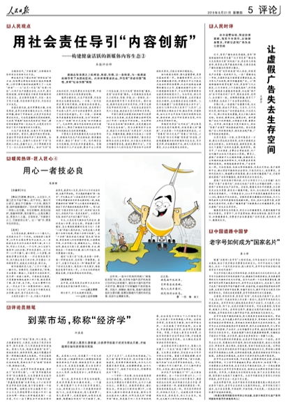 不管是从自身发展看还是从社会影响看,新媒体内容生产的治病祛疾、强身健体的药方,都在于“责任”二字。时代确实在为内容赋值,但内容并非普通商品。自媒体作者的个人产出也好,聚合平台上的热门内容也罢,它们不仅有“劳动价值”属性,更有“社会价值”属性。正是凝结在信息流之上的观念、思想、价值,让一条转发,与一枚流通的硬币有了本质的区别。换句话说,鼓励内容创业的百花齐放,不等于支持内容市场的泥沙俱下。内容创业者在时代风口上受益,就应该为自己的影响力负责。