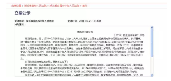 21日,全国法院减刑、假释、暂予监外执行信息网公示罪犯何剑雄减刑一案。