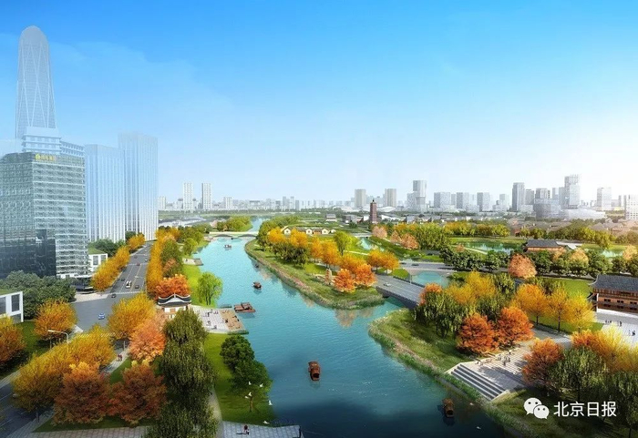 荡舟运河上,漫步森林中。规划在2016年开展的北京城市副中心总体城市设计基础上,以“一带、一轴”为统领深化城市空间结构,组织城市功能布局。并着重提出,要处理好水与城、蓝与绿、古与今的关系,将水城共融、蓝绿交织、文化传承作为城市副中心的主要特色。
