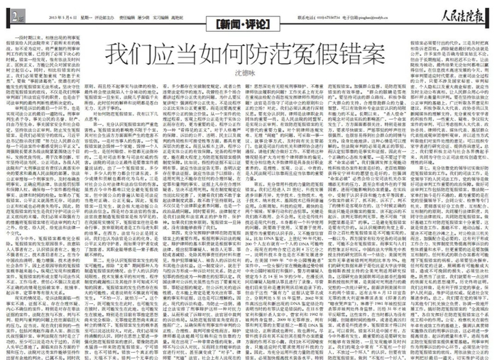 比如,2013年5月6日,他在人民法院报发表《我们应当如何防范冤假错案》一文,态度鲜明地指出:“一段时期以来,相继出现的刑事冤假错案给人民法院带来了前所未有的挑战,如不妥为应对,将严重制约刑事审判工作的发展,已经到了必须下决心的时候。”这是党的十八大以后,政法领域高级领导干部第一次公开在媒体上提出纠正冤假错案,在当时一石激起千层浪,“像防范洪水猛兽一样来防范冤假错案”“宁可错放,也不可错判”等表述一时成为金句。