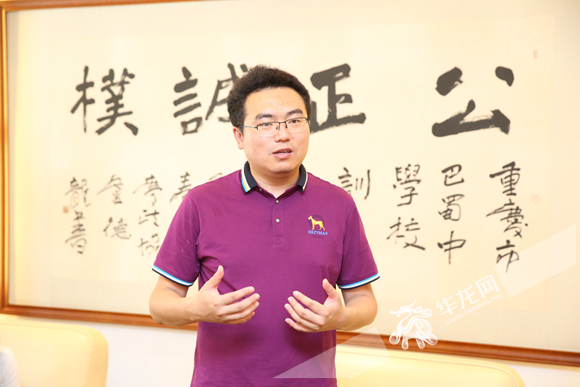 2018重庆高考文科最高分项涵的班主任老师赵成梁向记者介绍项涵的学习情况。 记者 刘嵩 摄