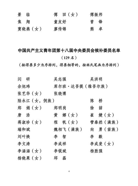 原标题:共青团十八届中央委员会委员、候补委员名单