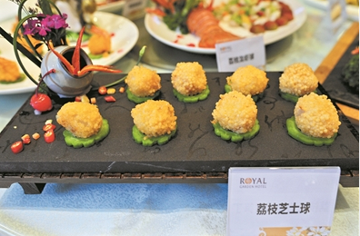 荔枝入菜除了有品种要求,在食材配搭上同样学问不少。何文宗透露,经过反复尝试,荔枝一般适合与虾类匹配。因为烹制海鲜通常不用糖,使用糯米糍或桂味荔枝原汁则可两全其美,带有淡淡果香。