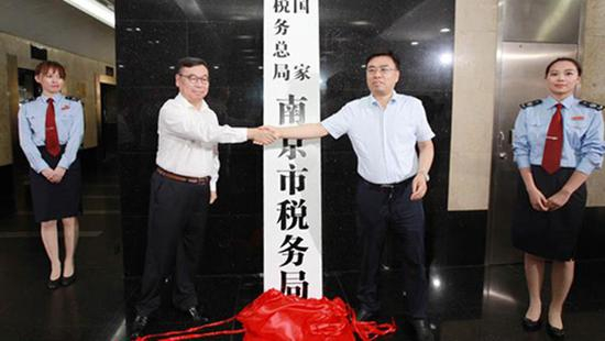 国家税务总局江苏省税务局联合党委书记、副局长王学东和南京市委常委、常务副市长、市委秘书长杨学鹏共同为国家税务总局南京市税务局揭牌。南京市副市长冉华出席挂牌仪式并讲话。国家税务总局第10联络(督导)组常务副组长刘金良出席挂牌仪式。国家税务总局江苏省税务局联合党委委员、南京市税务局联合党委书记、局长文月寿主持挂牌仪式。